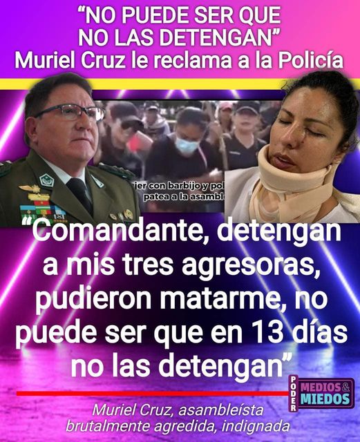 “Comandante, detengan a mis agresoras, pudieron matarme”. La asambleísta Muriel Cruz se indigna por los 13 días en los que la Policía no identifica ni detiene a las tres mujeres que la golpearon brutalmente.