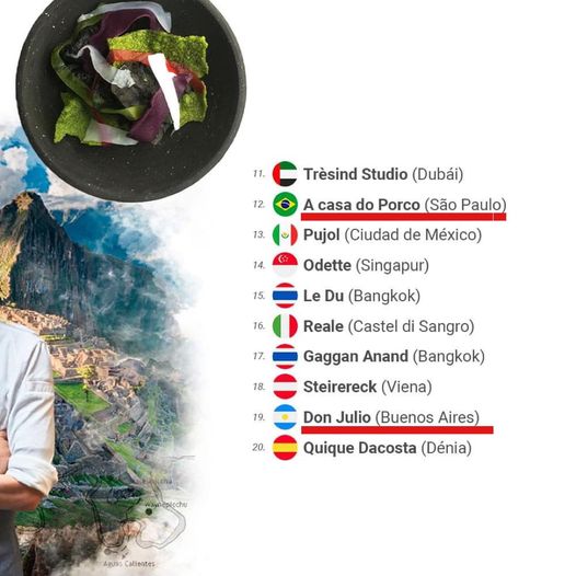 A casa do Porco (12) 🇧🇷 y Don Julio (19) 🇦🇷 entre los veinte mejores restaurantes del mundo. Si vas para São Paulo o Buenos Aires, procura hacer una parada en ellos. Adularán tu paladar y te va a encantar.