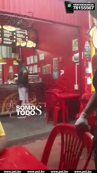 Un vecino decidió grabar su reclamo contra un local de comida rápida que, ocupa casi toda la acera con mesas para sus comensales, el