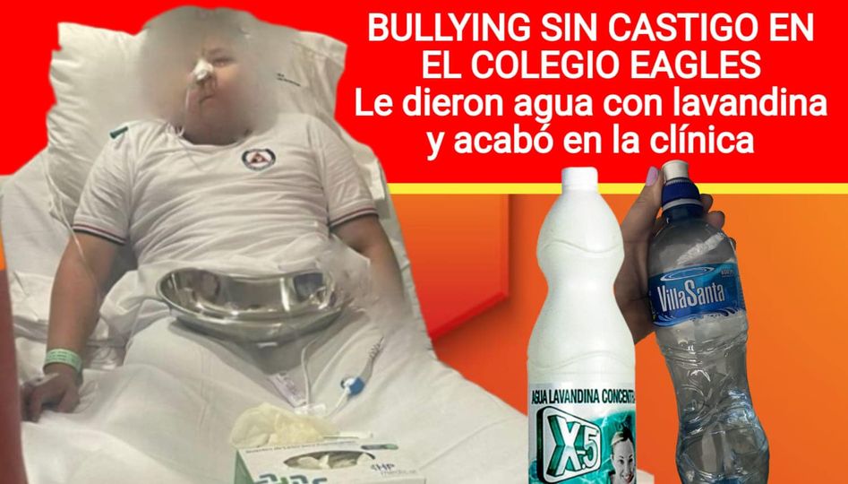 Bullying sin castigo en el Colegio Eagles. Un menor terminó en una clínica después de que le dieron agua con lavandina en una botella de agua mineral. Y se suman los padres que me escriben diciéndome que son varios los casos de bullying sin castigo en ese y otros colegios.