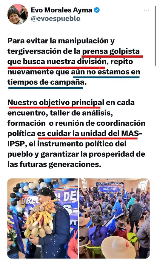 Evo acusa a la “prensa golpista” de buscar provocar la división del MAS.Categorías NoticiasEtiquetas , Facebook, Pepe Pomacusi Periodista 27/06/2023 Fuente: Pepe Pomacusi Periodista