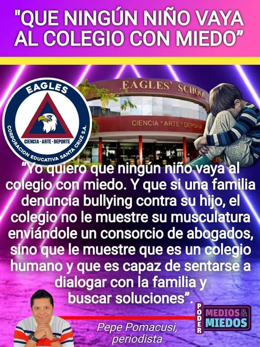 “Que ningún niño vaya al colegio con miedo”.Categorías NoticiasEtiquetas , Facebook, Pepe Pomacusi Periodista 28/06/2023 Fuente: Pepe Pomacusi Periodista