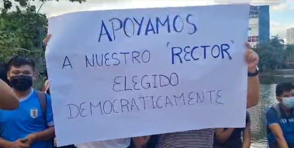 Un grupo de estudiantes de la UAGRM hoy con pancartas brindó su apoyo al Rector de la UAGRM, mientras que por otro lado la Ful presentó una acción de cumplimiento contra el Vice Rector Reinerio Vargas por que viajó por 25 días y no dejó en el cargo al decano de la Facultad de Derecho que por estatuto le corresponde, en la UAGRM algunos estudiantes están pidiendo el revocatorio de sus autoridades a la cabeza del Rector y del Vice Rector por que señalan que existen variad falencias en su gestión