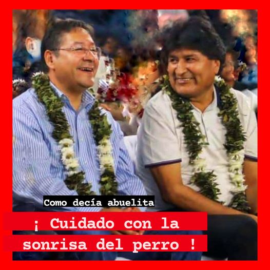 La escena 😱 que se dió en las últimas horas cuando el presidente apareció junto al jefe de los cocaleros, en los Juegos Estudiantiles en pleno territorio de la hoja 🌿 de coca que no se acullica dejó este mensajito 💌