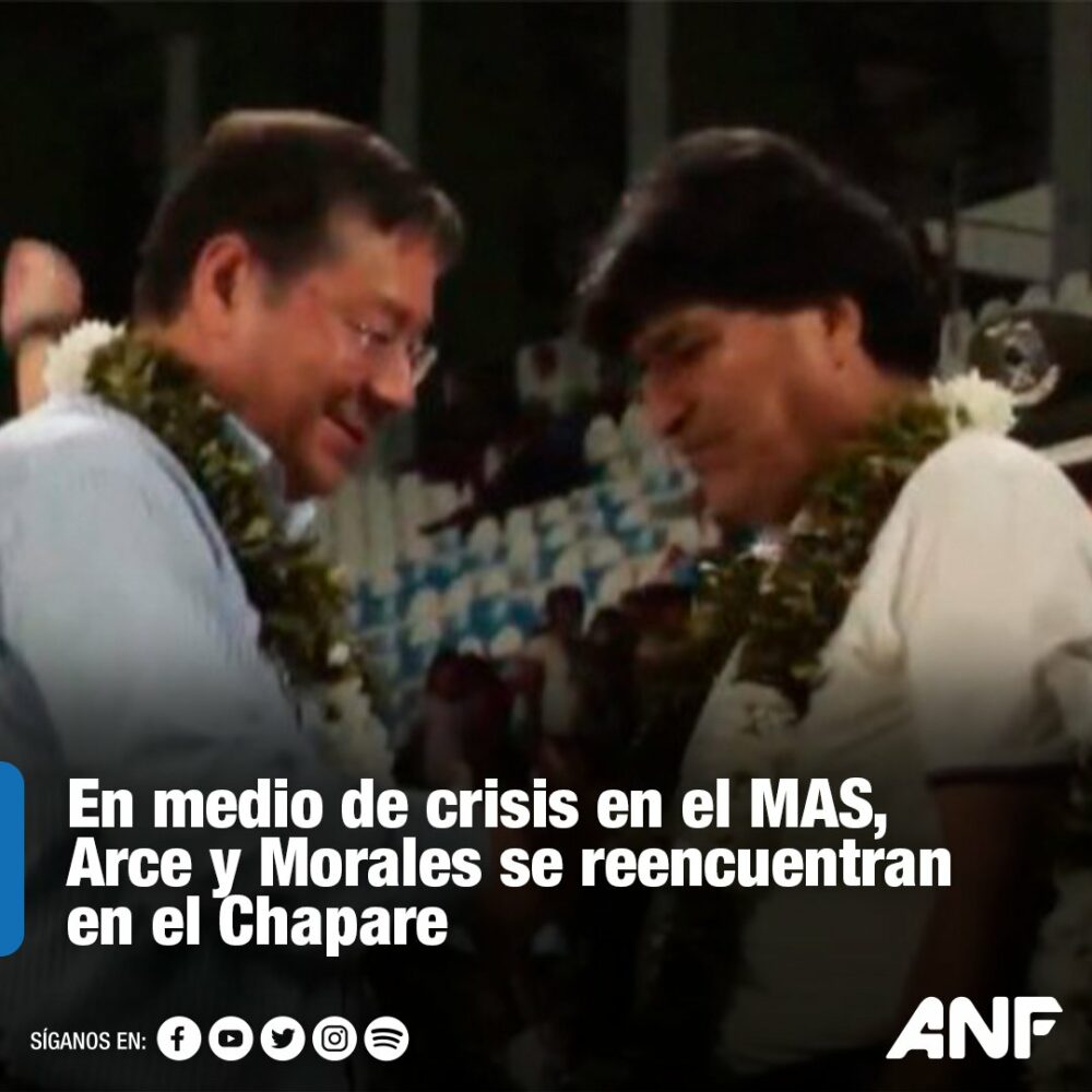 🔵 | Arce llegó al acto deportivo junto a la ministra de Salud y Deportes, María Renee Castro, quienes subieron a la tarima y saludaron a los asistentes, entre ellos Evo Morales.