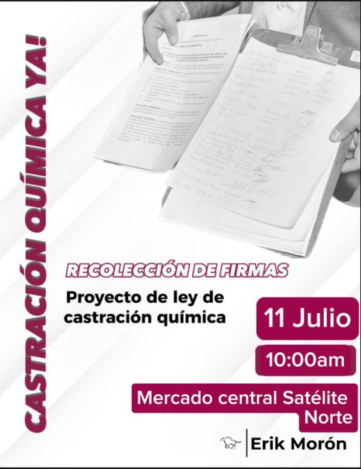 sexuales.Invita a la población que apoye con su firma, mañana 11 de julio en el mercado central de Satélite Norte.