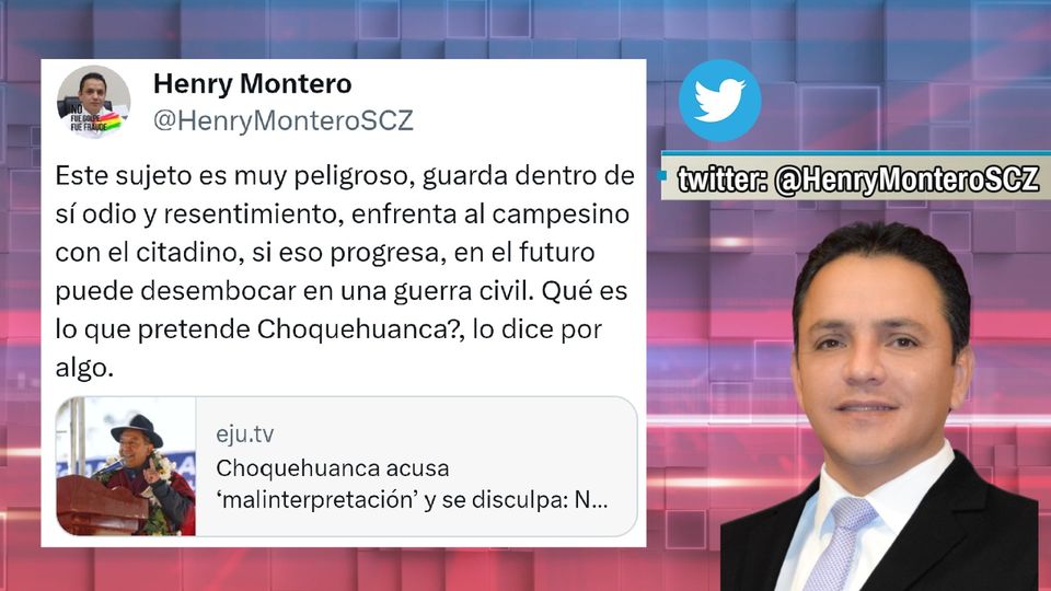 Senador Montero sobre Choquehuanca: «Es muy peligroso, guarda dentro de sí odio y resentimiento»Categorías NoticiasEtiquetas , Detrás de la Verdad, DTV, Facebook 11/07/2023 [vid_embed] Fuente: DTV => Recibir por Whatsapp las noticias destacadas