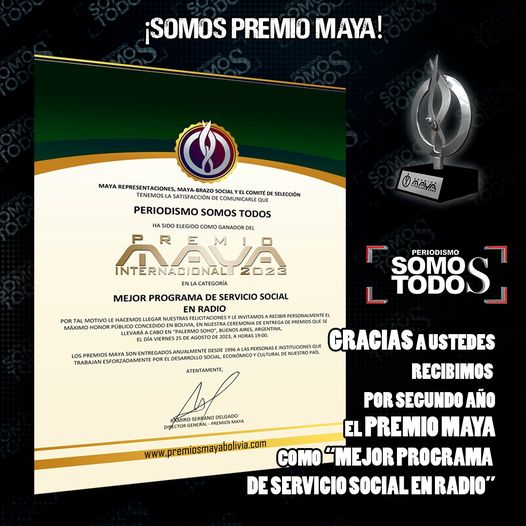 Gracias a ustedes recibimos uno de los premios más importantes del país, esta vez nos vamos a #Argentina Premios Maya Bolivia #Internacional
