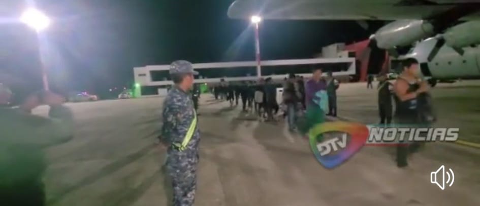 03:30 de la mañana de este sábado los 57 aprehendidos por explotación de minerales fueron trasladados hasta la ciudad de la Paz, este fue el operativo del traslado desde la ciudad de Cobija.