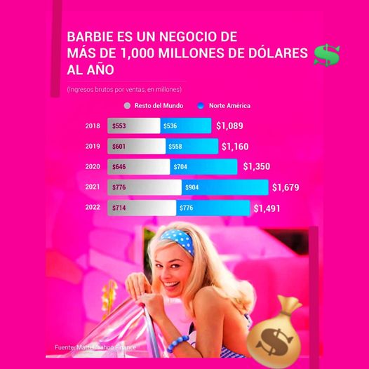 Barbie celebró recientemente 64 años como la pieza central de las marcas de juguetes de Mattel, siendo un negocio de más de 1,000 millones de dólares 💲 al año.