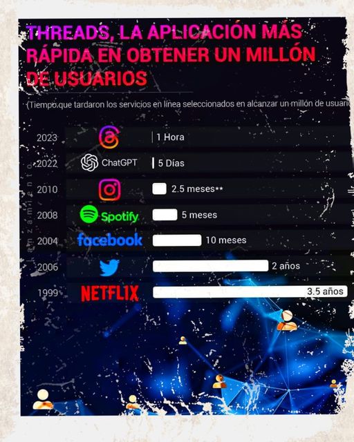 Es la aplicación 📲 que más rápidamente se ha descargado en el mundo, obteniendo 1️⃣ millón de usuarios en una hora ⌚y arrebatando la corona a la herramienta de inteligencia artificial 👾ChatGPT, que consiguió la marca cinco días después de su lanzamiento en noviembre del 2022.