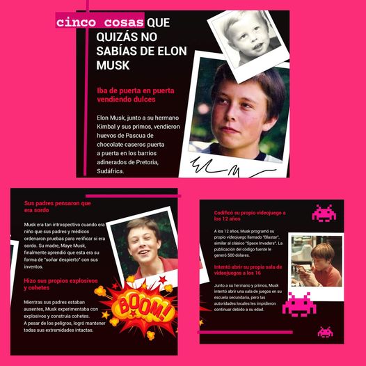 En su camino hacia el éxito 💪🏽 estuvo lleno de experiencias únicas. Desde vender dulces 🍡 puerta a puerta hasta desarrollar su propio 🕹️ videojuego, Musk demostró desde temprana edad su espíritu emprendedor y su pasión por la innovación ✍️