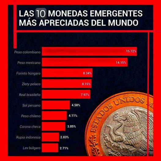 Tiene una apreciación de 15.72% contra el dólar 💲, según muestran los datos con el tipo de cambio spot.