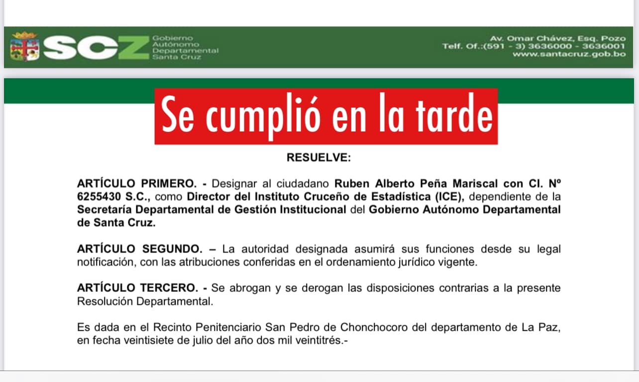 Esta mañana anuncié en la radio que iba a ser destituido el director del ICE (el de los 4 millones de cruceños). Y en la tarde lo destituyeron.