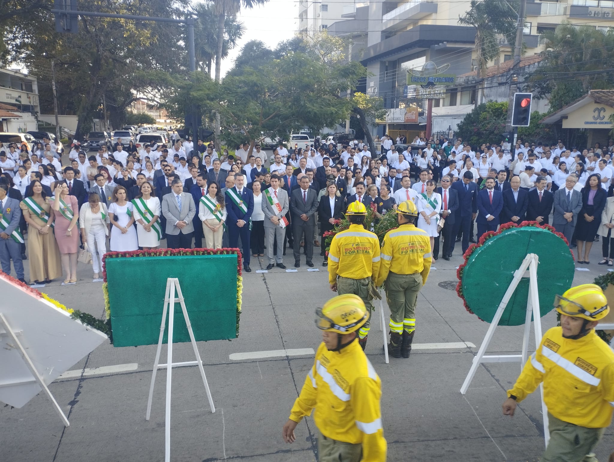 ofrenda floral de las diferentes instituciones, entre ellas la Gobernación y la Asamblea Legislativa Departamental.Las notorias ausencias en el evento fueron la del Vicegobernador Mario Aguilera, el Alcalde Johnny Fernández y la bancada del MAS.