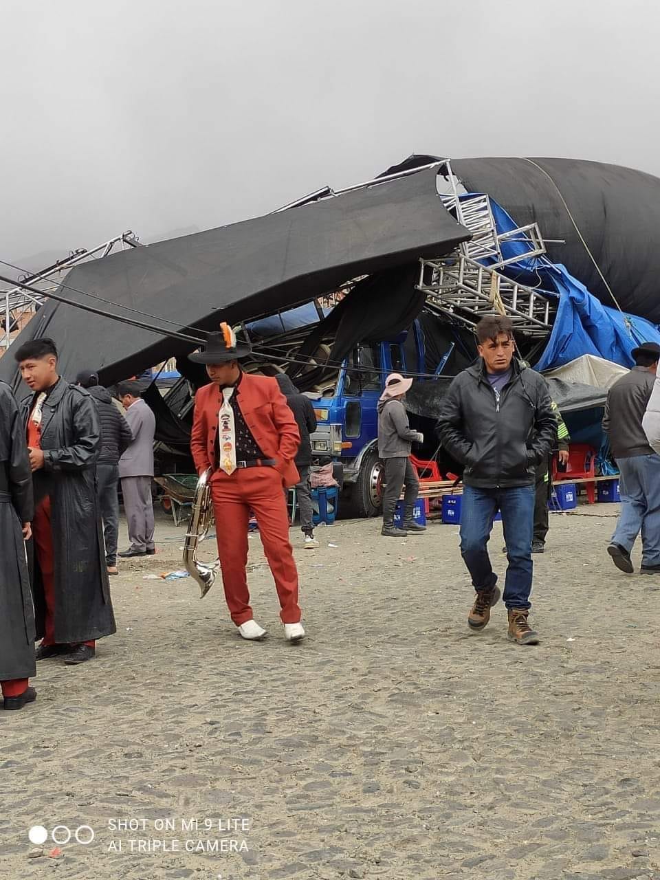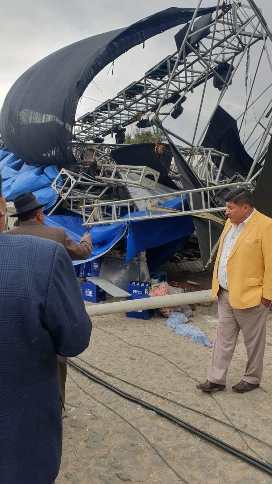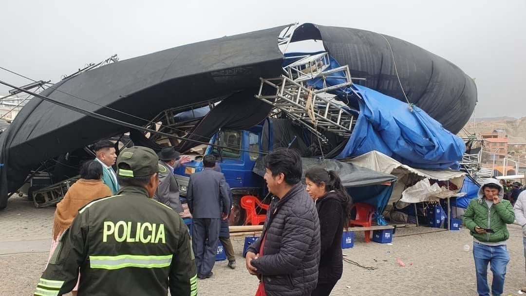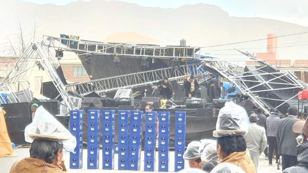 Durante este sábado, se registraron fuertes vientos en la ciudad de La Paz. Estos vientos provocaron en las últimas horas la completa caída de un escenario de música en la zona de Alto Irpavi, donde un grupo tenía planeado amenizar la festividad en honor a la Virgen de las Nieves.