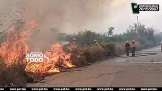 Los esfuerzos han sido enormes para controlar las llamas en la terminal aérea, sin embargo alrededores, sobre la Av. G-77 las llamas ganan terreno, amenazando los condominios de la zona.