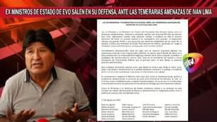 Un pronunciamiento firmado por 26 exministros del expresidente Evo Morales rechaza que el ministro de Justicia, Iván Lima, pretenda presentar un proceso penal contra el exmandatario por difamación y calumnia. Las exautoridades pidieron que reconsidere su postura o de lo contrario renuncie a su cartera de Estado.