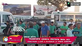 Este lunes, los micreros bloquean el acceso a la Quinta Municipal en Santa Cruz de la Sierra. La protesta se