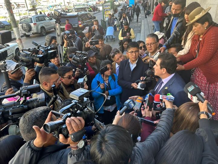 Vean la cantidad de periodistas buscando la palabra del alcalde de Cochabamba.