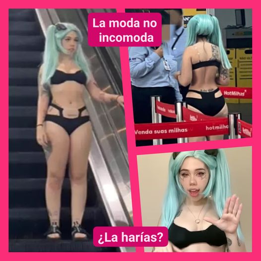 La influencer 📱Kine-Chan, de 21 años, se encontraba embarcando en el aeropuerto de Navegantes, en Brasil, cuando el personal de seguridad le denegó el embarque.✂️ ¿El motivo? Su atuendo. La creadora de contenidos llevaba un bikini negro como parte de su look de cosplay, describió La Vanguardia