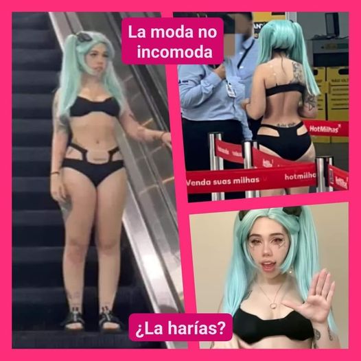 ✈️ ¿ EN BIKINI ? 👙 ! NO MI NIÑA ❗ 📳 Algunos influencers comparten su vida en internet y hacen lo que sea para ser virales. Un tipo se gastó ‘13.000 euros’ para parecerse a un perro y no un ser humano, ahora una joven de 21 años llegó al aeropuerto en bikini 👙 esperando abordar un avión, lo que abrió un debate sobre la ropa que es apropiada o no. La influencer 📱Kine-Chan, de 21 años, se encontraba embarcando en el aeropuerto de Navegantes, en Brasil, cuando el personal de seguridad le denegó el embarque.✂️ ¿El motivo? Su atuendo. La creadora de contenidos llevaba un bikini negro como parte de su look de cosplay 🙀La joven llevaba el disfraz de ‘Rebecca’, un personaje de anime de Netflix Cyberpunk Edgerunners, que constaba únicamente de un bikini negro, unas sandalias y una peluca azul turquesa, aseguró El Tiempo. La seguridad del aeropuerto 👮🏾♂️🧑✈️ NO le permitió ingresar al avión por considerar que su vestimenta no era la apropiada y perdió el vuelo