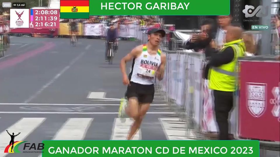 El gran atleta orureño, Héctor Garibay, ganador de la Maratón de México 2023, en su edición No 40 este domingo 27 de agosto de 2023. Garibay logró un tiempo de 2 horas 8 minutos y 23 segundos superando el record del evento que tenía el atleta de Kenia Titus Ekiru con 2:10:38 en 2018.