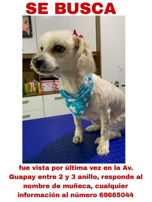 Esta perrita salio de su casa en la Av. Guapay ente e 2do 3er anillo y no volvió. Su propietaria pide ayuda a la población para encontrarla. Si conoce algún dato puede Llwmar a :