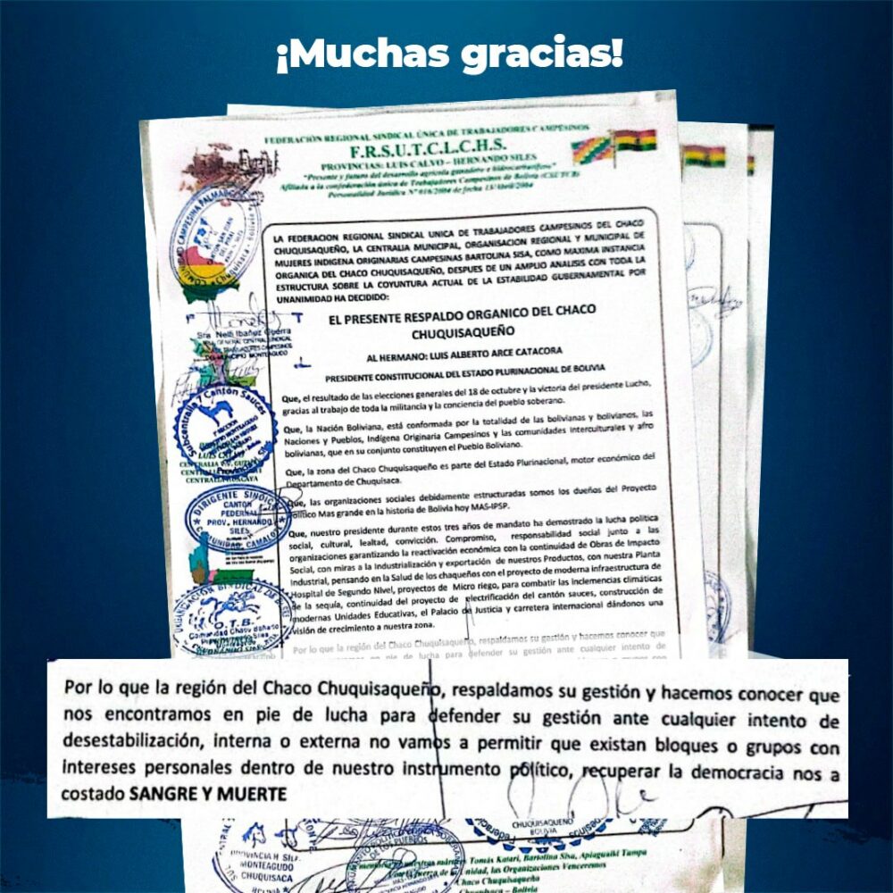 No nos cansaremos de agradecer el respaldo y compromiso social de nuestras organizaciones, que apuestan por el trabajo y el desarrollo del país. A la Federación Regional Sindical Única de Trabajadores Campesinos del Chaco Chuquisaqueño, muchas gracias por su respaldo.