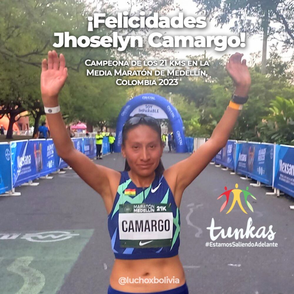 El atletismo vuelve a darnos otra alegría. Saludamos a nuestra atleta #TUNKA, Jhoselyn Camargo, que ganó la Media Maratón de Medellín 2023, en #Colombia, conquistando los 21 kilómetros de su categoría. Gracias por llevar en alto el nombre de #Bolivia🇧🇴.