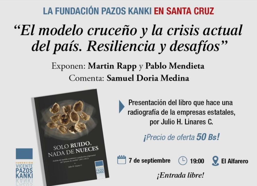 Hoy espero a los cruceños interesados en la economía en este evento. El modelo cruceño es recursos renovables más emprendimiento y analizaremos cómo le irá en una situación crónica de bajo crecimiento y problemas cambiarios https://t.co/b4LeB09OIq