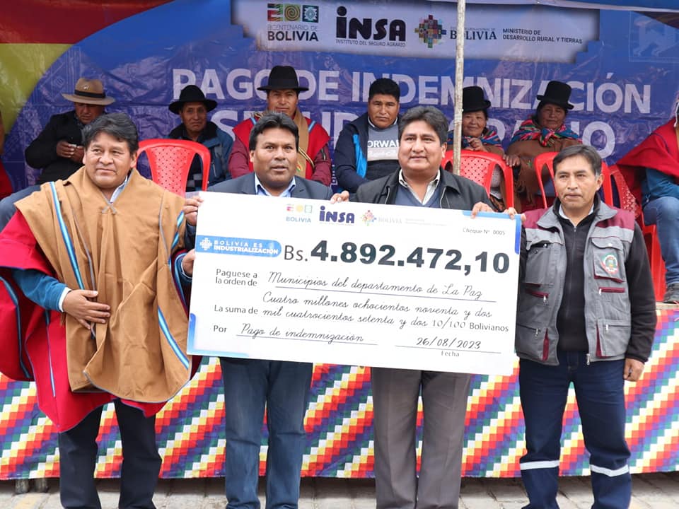 (Hilo) Cuidamos la producción agrícola y garantizamos la Seguridad con Soberanía Alimentaria del país. Con el Seguro Agrario «Minka», indemnizamos con Bs4,8 millones a más de 10 mil familias productoras de 12 municipios de #LaPaz, afectadas por los fenómenos climáticos. https://t.co/GJyFGaJg5x