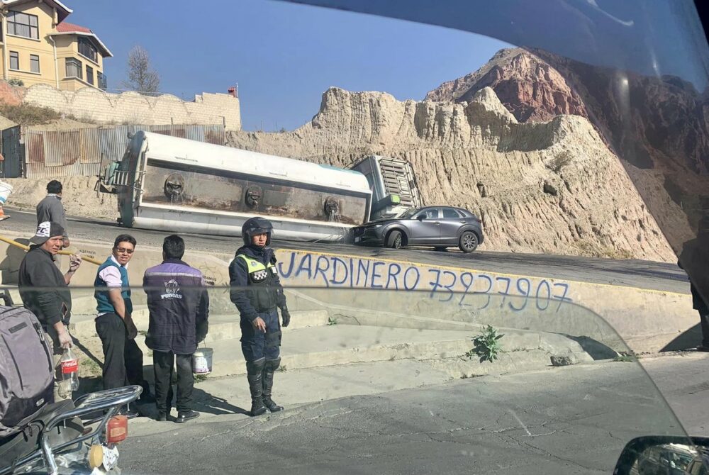 | #LaPaz Un camión cisterna de alto tonelaje sufrió un accidente en el ingr…