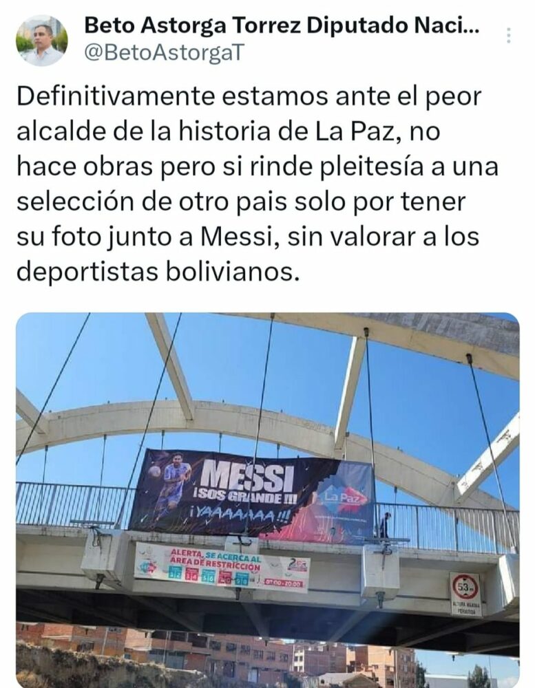 🔵 #ANF | El diputado de CC, Alberto Astorga, reprendió al alcalde de #LaPaz, Iván Arias, por haber colocado carteles y un mural que dio la bienvenida a la selección #Argentina, que jugará contra #Bolivia mañana. https://t.co/bvyGSW1FgF
