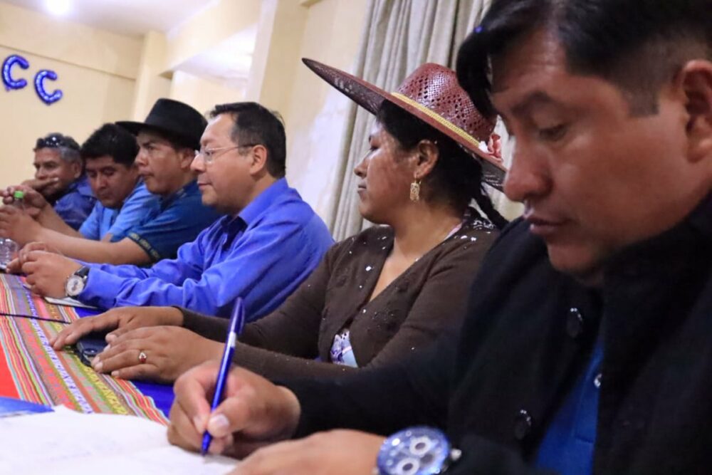 En reunión con las hermanas y hermanos de la Región Valles de la #FSUTCC, en Cochabamba, coincidimos en la necesidad de seguir con la implementación de proyectos integrales que nos permitan garantizar la producción para fortalecer la Seguridad con Soberanía Alimentaria del país. https://t.co/4lk7fzg7ke