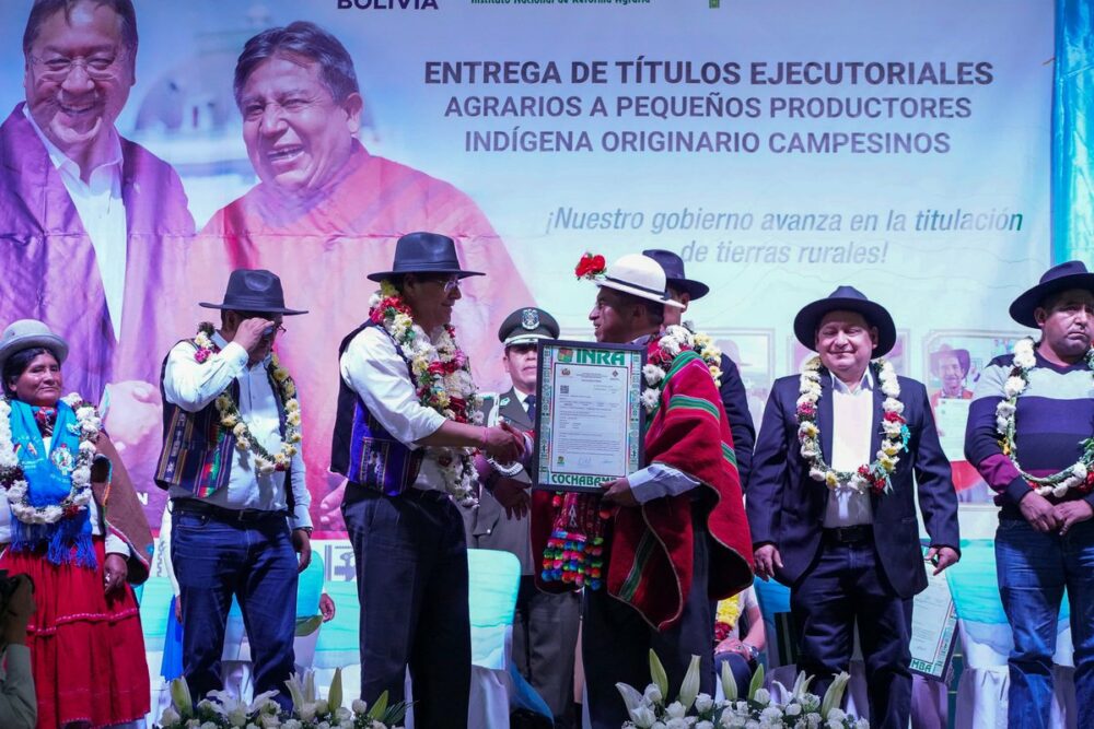 En el día de su aniversario, rendimos homenaje a #Cochabamba con la entrega de 3.550 títulos ejecutoriales en beneficio de más de 5.900 familias productoras, saneando 17.020 hectáreas. Aseguramos el derecho propietario de la tierra, a quienes la trabajan. ¡Muchas felicidades! https://t.co/CtjJfBnK2E