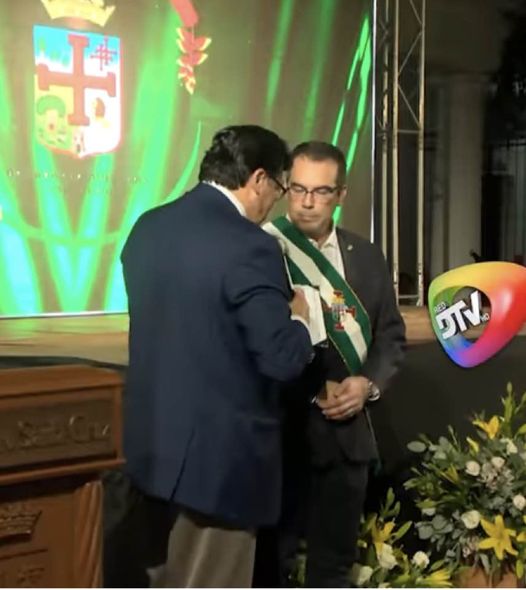 Jerges Mercado (MAS, pdte de diputados) entrega distinción a Mario Aguilera (Creemos, vice