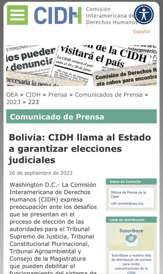 CIDH llama al estado boliviano garantizar las elecciones judiciales.