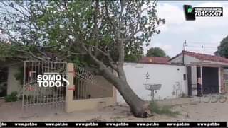 Equipos de emergencia acudieron al auxilio, para talar el árbol que cayó encima del muro de un domicilio.