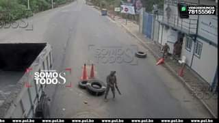 En imágenes de cámaras de seguridad se puede observar a los conductores de los tráileres cruzar a gran velocidad por delante, con el riesgo de atropellar a los funcionarios de la Aduana Nacional de Bolivia.