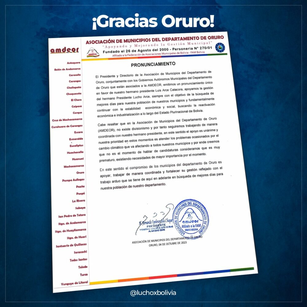 Asociación de Municipios del Departamento de Oruro. https://t.co/lqcEz2bb4Y