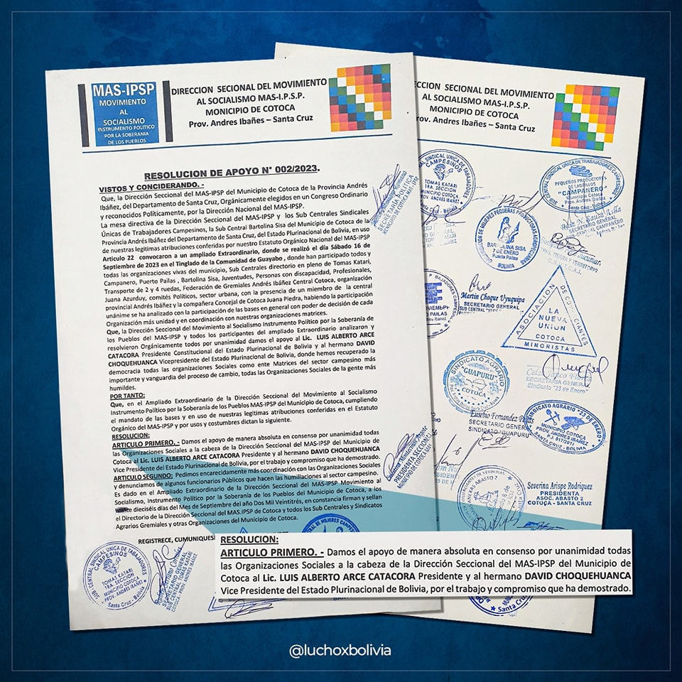Valoramos el profundo compromiso de nuestra Dirección Seccional del #MASIPSP de Cotoca, en #SantaCruz que están más firmes que nunca para defender la Unidad de nuestro Instrumento Político, ante intereses divisionistas. Nos sentimos fortalecidos con su respaldo ¡Muchas gracias! https://t.co/hHMNNkHo80