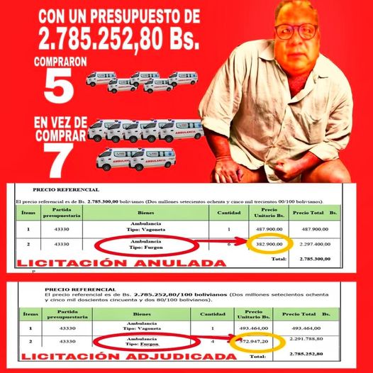 La licitación de las ambulancias que puso en marcha por el Mario Centellas 🦍 Secretario municipal de Finanzas, es otra de las investigaciones que expuso Don Este…. peeero los señores concejales, no fiscalizaron