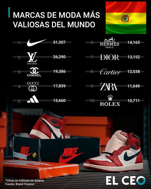 ¿Y en Bolivia? ¿Tienes algo Nike, Louis Vouitton, Gucci, Adidas, Hermes, Cartier, Zara o Rolex? ¿Qué marca encabezaría nuestro ranking nacional?