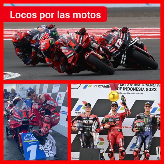 ESPECTACULAR CARRERA DE PECO En Mandalika, el campeón 🥇 logró otra victoria en el campeonato de y volvió a la cima del torneo, capitalizando la caída y abandono de Jorge Martín. Rápida reacción tuvieron Francesco -Peco- Bagnaia 💪🏾y el equipo Ducati para recuperarse en el Gran Premio de Indonesia, ganando la competencia tras revertir la mala clasificación, y volver a liderar el campeonato de MotoGP. Tres marcas diferentes en el podio 🥇 🥈 🥉
