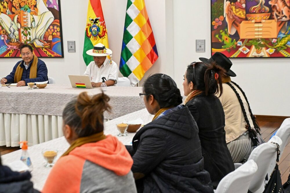 Una de las mayores fortalezas de nuestro Gobierno es el diálogo y coordinación constante con las organizaciones sociales para la toma de decisiones. Hoy nos reunimos con hermanas de la Conf. Sindical de Mujeres de Comunidades Interculturales de Bolivia. ¡Gracias por el cariño! https://t.co/CTVcG85HMG