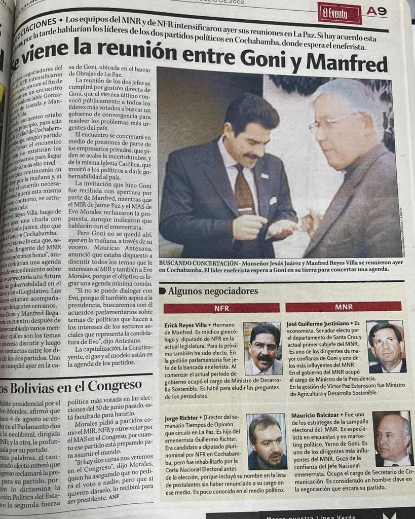 que junto al hermano del ex capitán fue del equipo negociador para la alianza con GonzaloSánchez de Lozada en 2002.