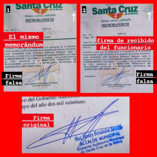 Es el mismo memorándum, es el mismo funcionario, en ambos memo firmó como recibido solo que ambos tienen un gran detalle, las firmas de aprobación no son las del Alcalde.