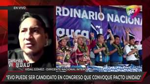 El Dirigente Nacional De Los Interculturales del “ala renovadora”, Vidal Gómez, aseguró que Evo Morales ya no es jefe del MAS ante el TSE y ahora quien lidera el MAS-IPSP son las organizaciones Sociales, motivo por el cual asegura que serán ellos quienes convoquen al nuevo congreso del MAS donde Evo será invitado.