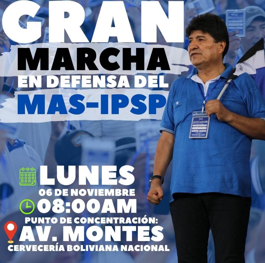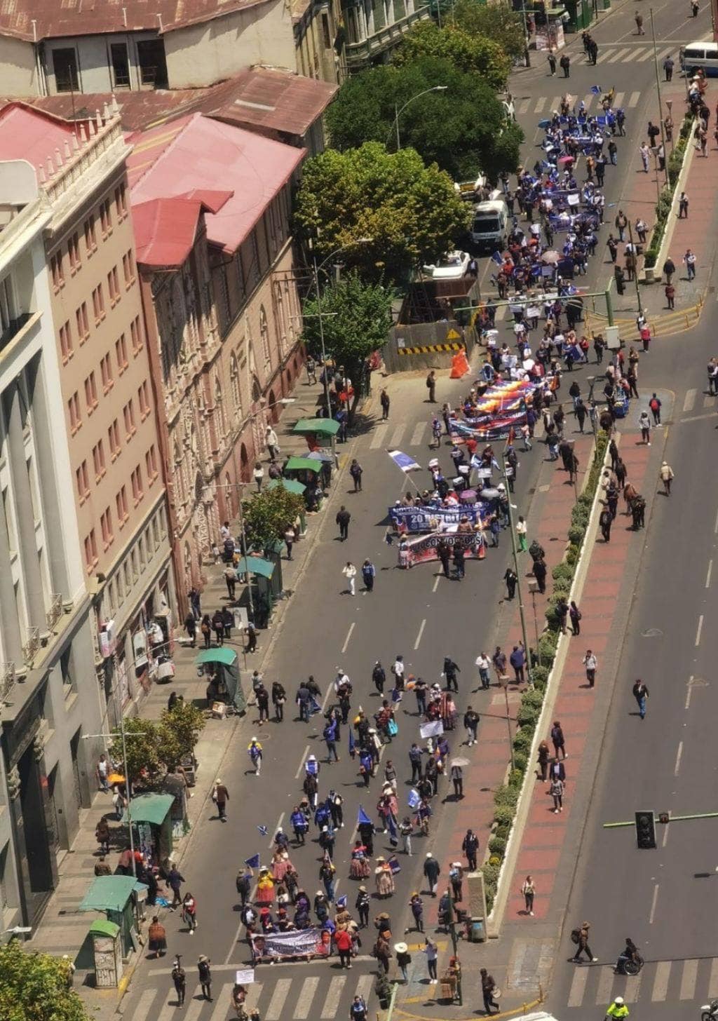 La convocatoria de simpatizantes de Evo Morales a una gran marcha para rechazar la resolución del TSE que anuló el congreso del MAS en Lauca Ñ se redujo a una pequeña concentración que recorrió las principales calles de la sede de Gobierno.